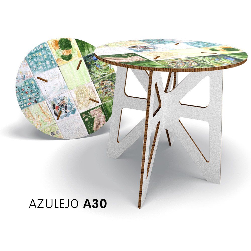 Inzwischen ist aus der Idee eine Kollektion aus Beistelltischen und Messe-Stehelementen entstanden – die in Re-board® hergestellt werden. Die größeren Tische, wie der Ess-/Schreibtisch und der extra lange Konferenztisch, lassen sich nur in Multiplex fertigen. Weitere Modelle folgen. …